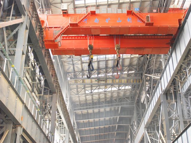The difference between a double trolley bridge crane and a hook bridge crane is that two trolleys are installed on the main beam, and the double trolleys can be lifted or operated separately; When lifting long items, synchronous lifting and operation can be achieved through the switch on the control panel.